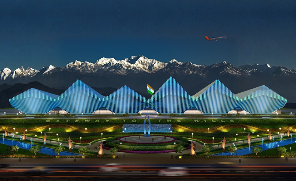 Bagdogra Airport in Siliguri, North Bengal, serves as a key gateway to the Eastern Himalayas, linking destinations like Darjeeling, Gangtok, Kalimpong, Kurseong, and Mirik. Designed as a civil enclave within the Bagdogra Air Force Station, the airport embodies a sustainable, futuristic vision with the goal of achieving net-zero carbon emissions. Addressing the site’s flood-prone terrain, the design integrates advanced storm water management systems with retaining walls, swales, and underground drainage to ensure resilience. Drawing inspiration from the Kangchenjunga range and Darjeeling’s tea estates, the terminal’s façade of parametric aluminium fins reflects the region’s landscape, establishing it as both an architectural landmark and an environmentally sensitive infrastructure that harmonizes connectivity, sustainability, and local heritage.