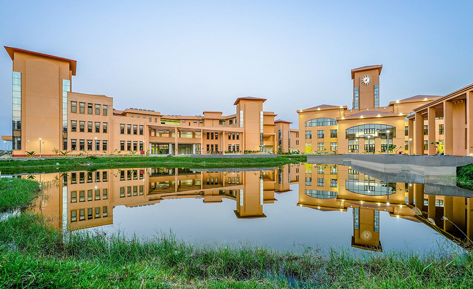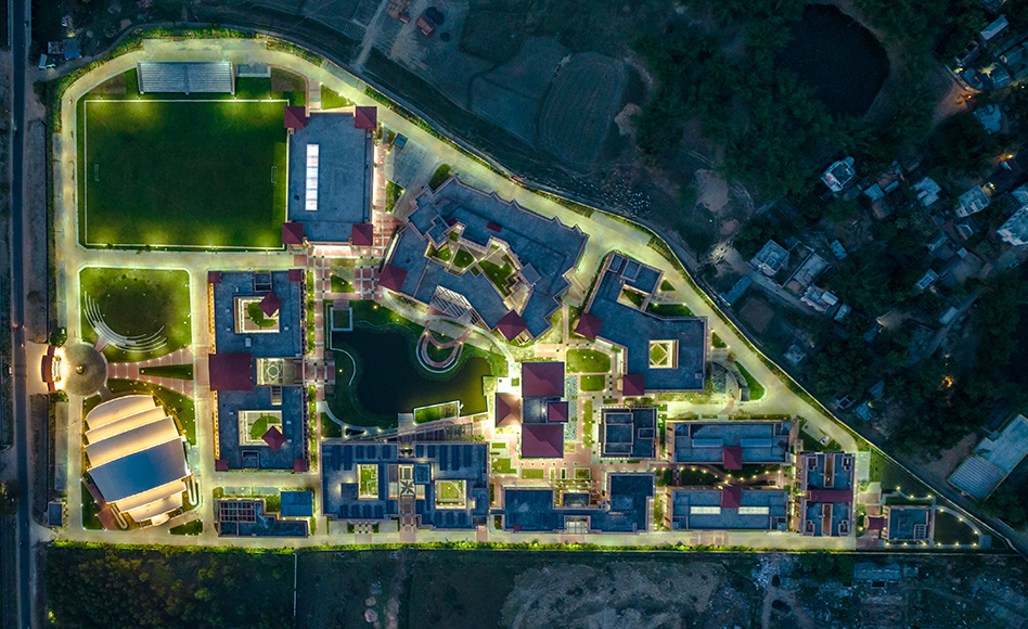 Biswa Bangla Biswavidyalaya (BBB), a liberal arts university near Shantiniketan, embodies Tagore’s vision of learning in harmony with nature. Inspired by Bengal’s cultural and architectural traditions, the campus integrates terracotta craft, bamboo, and traditional forms like the ‘do-chala’ roof, while engaging local artisans and communities. Its masterplan features a conch shell-inspired auditorium, a clock tower-like library, and an eco-lake that supports net-zero water goals and fosters interaction. With passive design, solar energy, rainwater harvesting, and green buffers, BBB blends sustainability with cultural continuity, creating a model of community-driven, contextually rooted education.