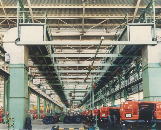 This plant includes construction of various plant buildings such as Chassis Assembly Shop, Gear Shop, Heat Treatment Paint Shop, Body Shop, etc. and a large number of utility and non - utility Buildings in 300 acre area. The total built - up area of the project is over 1,600,000 sq. ft.